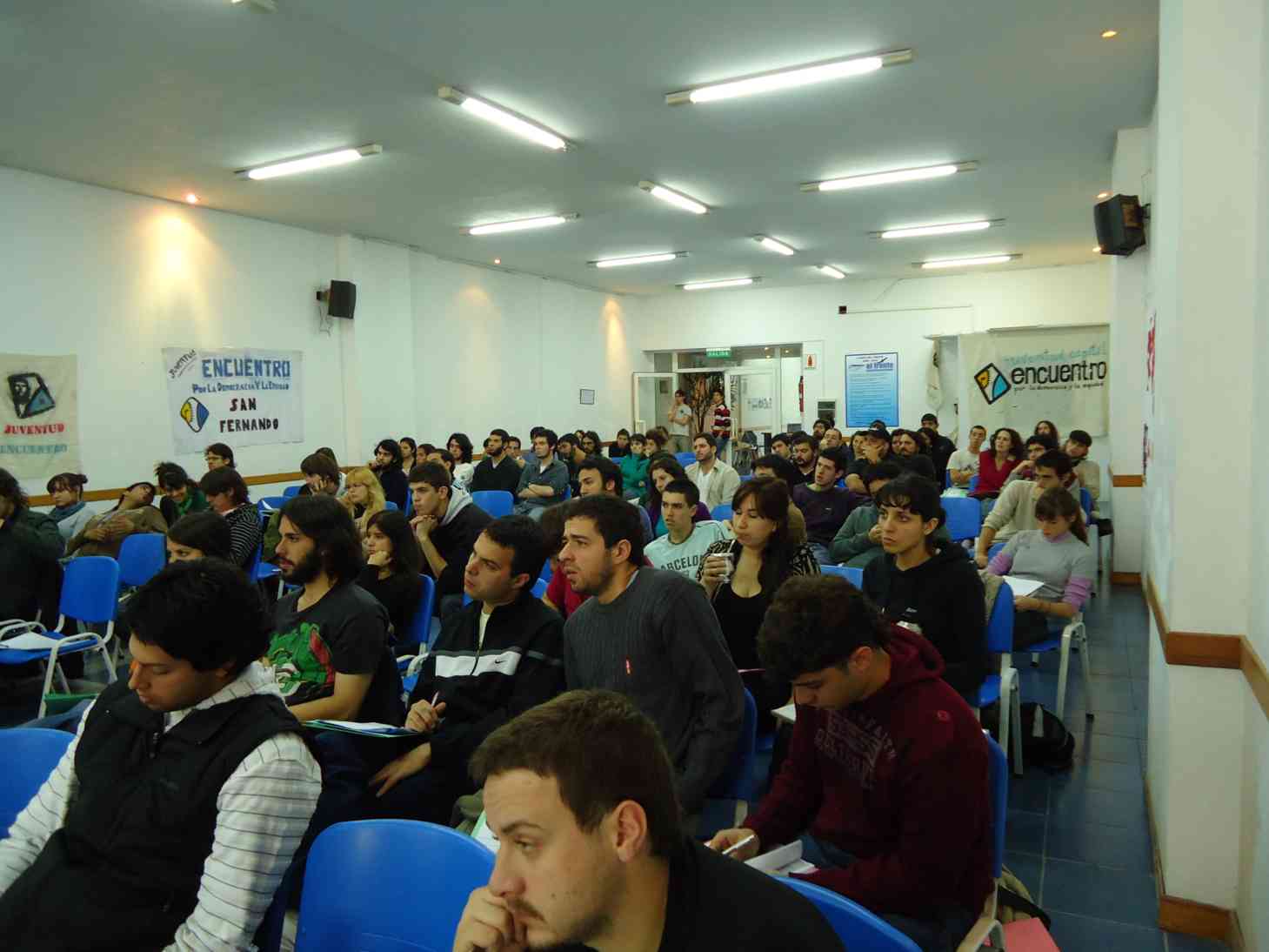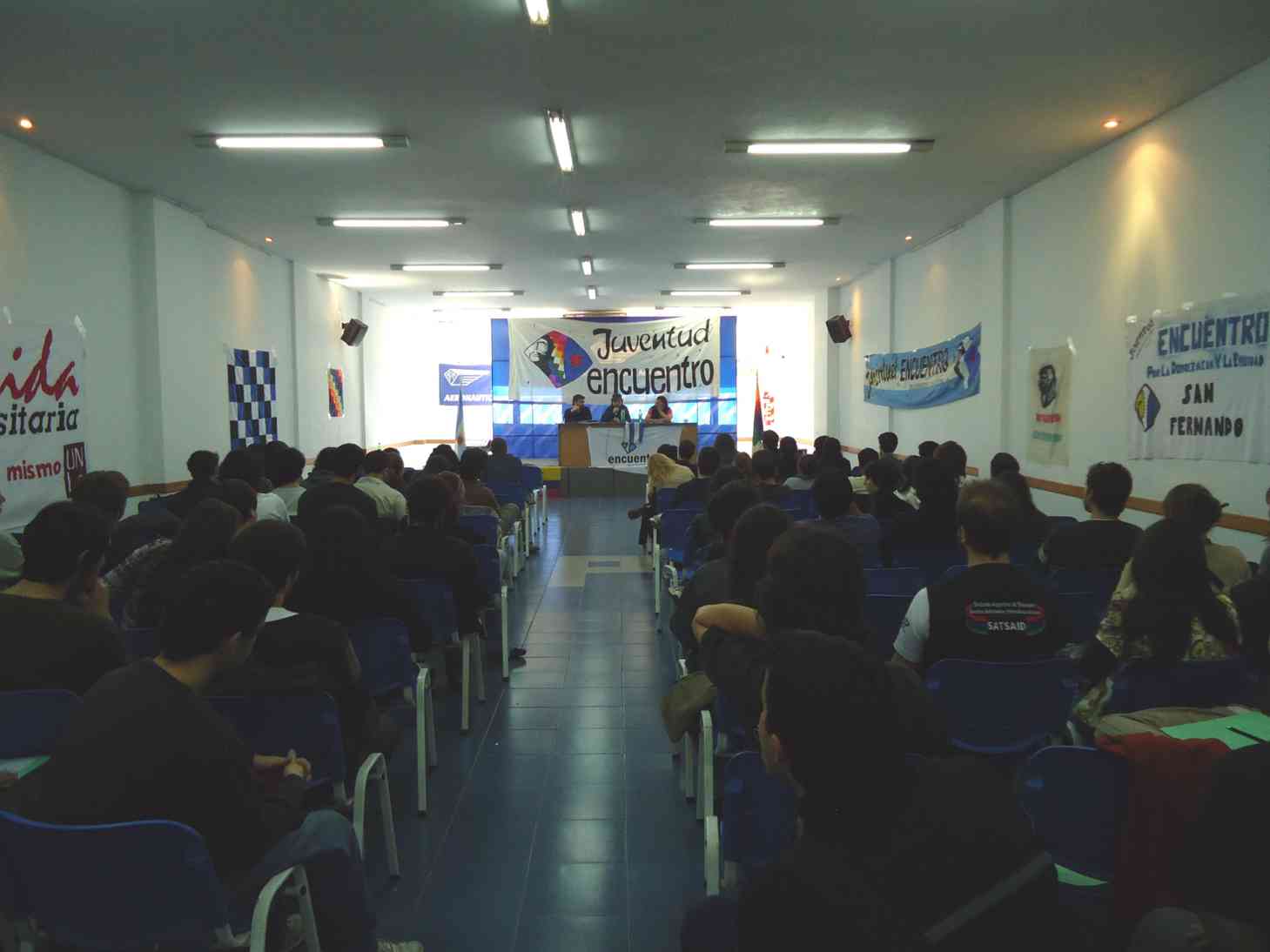 El encuentro comenzó con unas palabras de Eduardo Rinesi (Rector de la UNGS) y del presidente del EDE Capital, José Campagnoli, quienes hicieron un análisis del proceso político iniciado en 2003, y de la coyuntura actual. Luego se formaron comisiones de discusión donde se debatieron aportes de todos los compañeros al documento político de la Juventud. Luego de un breve almuerzo el compañero Beto Pianelli (referente del SUBTE) nos convocó para unas breves palabras antes de pasar a discutir en comisiones de Juventud Sindical (donde participó el mismo Beto!), Universitarios y Terciarios, Frente Territorial, y Secundarios, de las cuales surgieron debates muy enriquecedores para la militancia. Luego de una puesta en común de todas las comisiones, los compañeros Adrián Grana y Daniel Ravettino (Presidente y secretario general del EDE Provincia Bs. As.) cerraron la jornada de cara a un auditorio lleno.